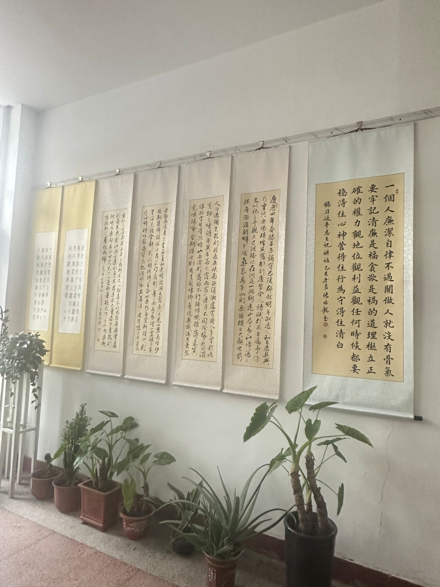 为深入推进校园廉洁文化建设,厚植崇廉尚洁的育人土壤,近日,我校离退休书画协会携手校关工委,举办“丹青颂廉韵翰墨扬清风之以美润廉,桃李同春”师生廉洁书法作品联展,作品在老干部活动中心一楼大厅进行展览。