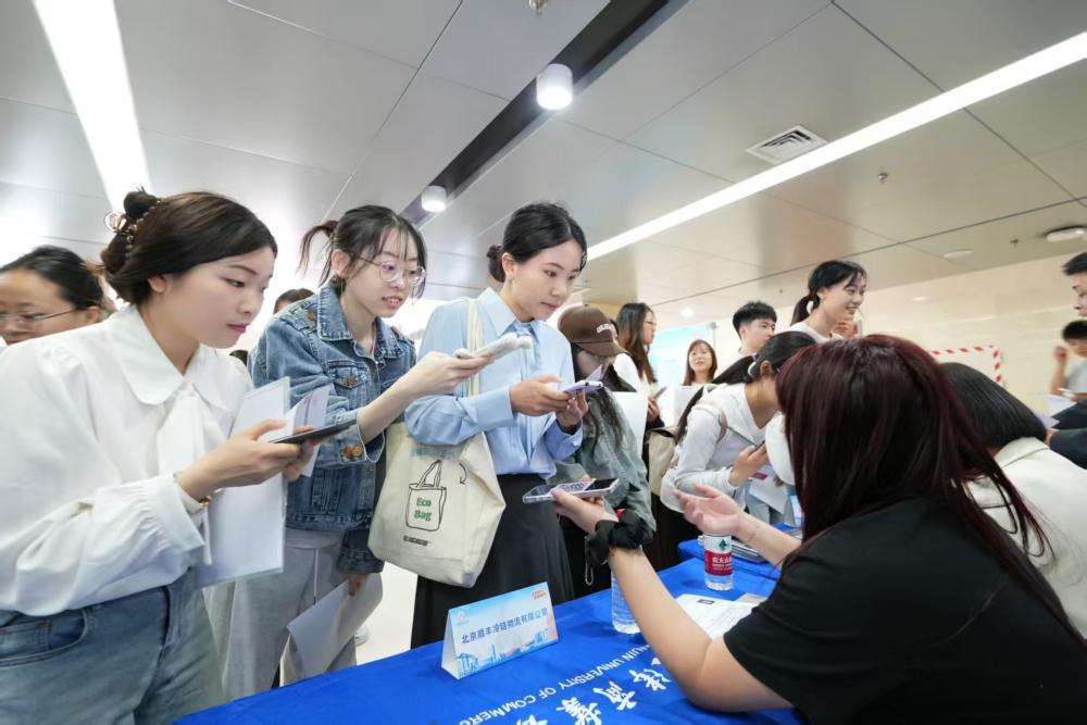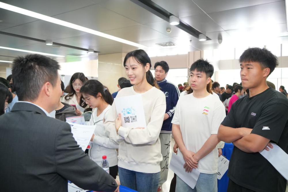 现场气氛高涨、人潮涌动,学生们穿梭于各个展位之间,寻觅心仪岗位,积极与企业交流沟通。44家校友企业精心筹备、热情参与,带来近600个优质招聘岗位,招聘岗位涵盖财经、管理、机械制造等多个行业领域,为毕业生提供了广阔的就业选择空间。同时还依托校友企业的直播基地开展线上带岗。线上线下参会学生900余人,现场投递简历1822份。