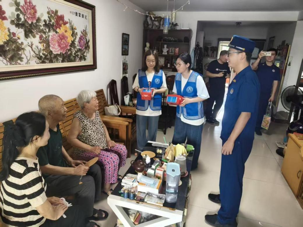 为居民送上“安全礼包”。在北辰区星河时代社区、暖洋家园小区活动中心,“天商蓝”消防安全社会实践团向居民发放消防安全宣传单、开展问卷调查,“手把手”“一对一”教大家如何使用灭火器、防烟面罩,通过趣味问答加深居民记忆,通过相声、歌曲等喜闻乐见的形式让安全宣传变得生动鲜活,确保人人都能听得懂、学得会。此外,团队成员与消防员、社区工作者还进行入户走访,重点检查居民家中的电气线路、燃气灶具等火灾隐患点,现场指导安全用火用电、逃生自救技能,为居民送上“安全礼包”,帮助居民筑牢消防安全“防护盾”。